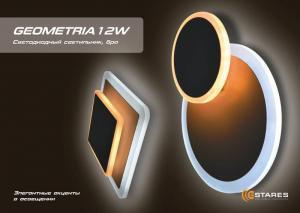 Светодиодный светильник GEOMETRIA 12W является современной альтернативой настенного светильника, типа БРА, используется для основного освещения внутренних бытовых помещений.