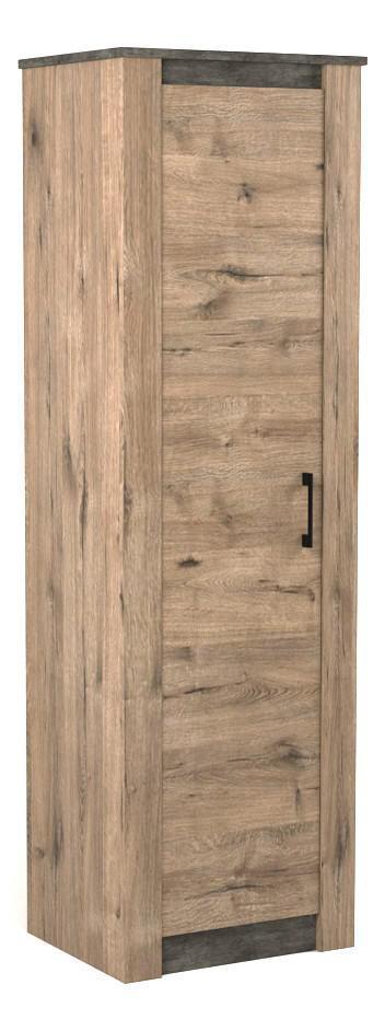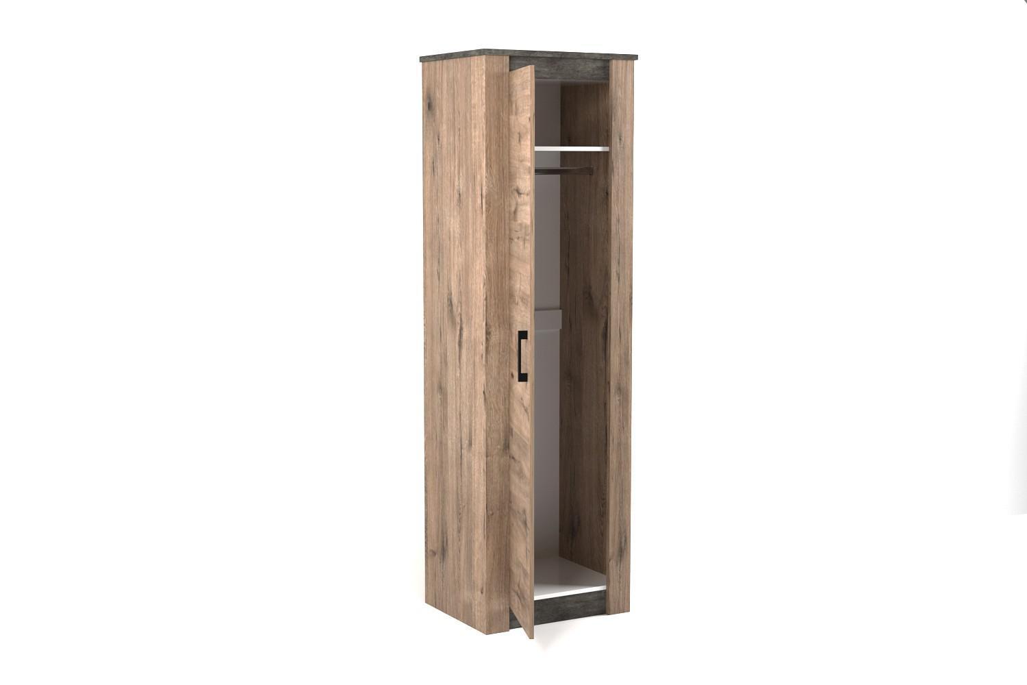 Ищете практичную и изысканную мебель для своего интерьера? Шкаф платяной Денвер из коллекции «Денвер» – то, что вам нужно. в следующей комплектации: 1 дверца, 1 полка, 1 штанга для вешалок. ЛДСП Е1, из которого выполнен фасад, имеет прочное верхнее покрытие (оттенок «веллингтон»), подходящее для использования в помещениях с повышенной проходимостью, а компактные размеры изделия позволят сэкономить полезное пространство (шкаф шириной 672 мм и глубиной 538 мм, при этом вы сможете разместить в нем все необходимое благодаря внушительной высоте, равной 2194 мм).