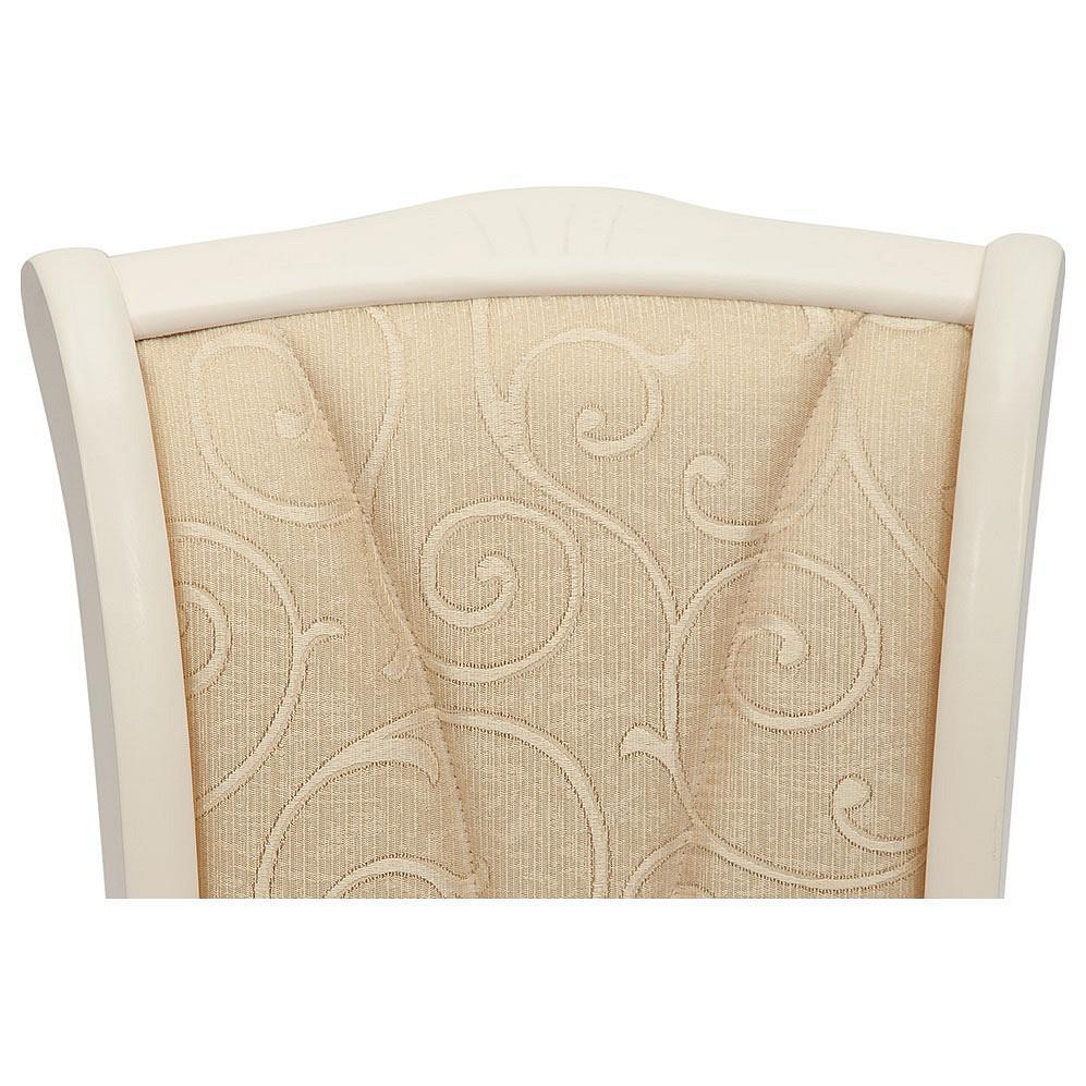 Обивка сидения и спинки нежного оттенка с витиеватым рисунком, красиво прострочена.