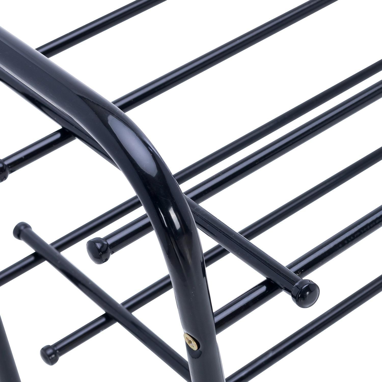 Стеллаж для обуви Комо 2 LST_2500000071591 станет удачным дополнением вашего коридора или прихожей. Вы сможете компактно разложить свою обувь, при этом габариты самого изделия довольно миниатюрны: 715 мм в ширину, 395 мм в длину и 325 мм в глубину. Товар представлен брендом Leset и входит в серию «Комо 2». Металл, из которого изготовлен корпус, имеет полуматовый верхний слой, окрашен в выигрышный оттенок (черный) и оптимально подходит для подобных изделий благодаря своей практичности и неприхотливости. В предлагаемый комплект входит 2 полки, стоимость изделия составляет 1050 руб.