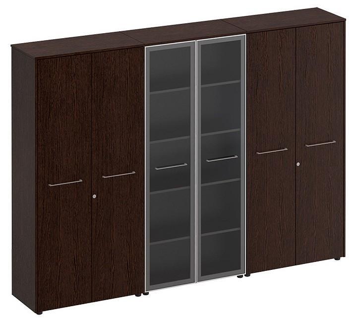 Шкаф комбинированный является стенкой, состоящей из шкафа со стеклом для документов и двух закрытых шкафов для документов под общим топом.