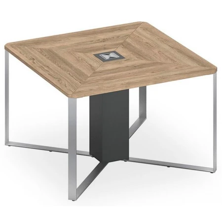 Стол состоит из столешниц (4 шт.), опорной тумбы, металлокаркаса и соединительных пластин (4 шт.). Металлокаркас состоит из 4-х опор угловых, которые размещены по диагонали стола и установлены под углом 90° друг к другу. «L»-образная металлическая опора выполнена из стальной трубы прямоугольного сечения. Элементы опоры соединены при помощи электросварки и имеют защитное лакокрасочное покрытие – порошковая краска.