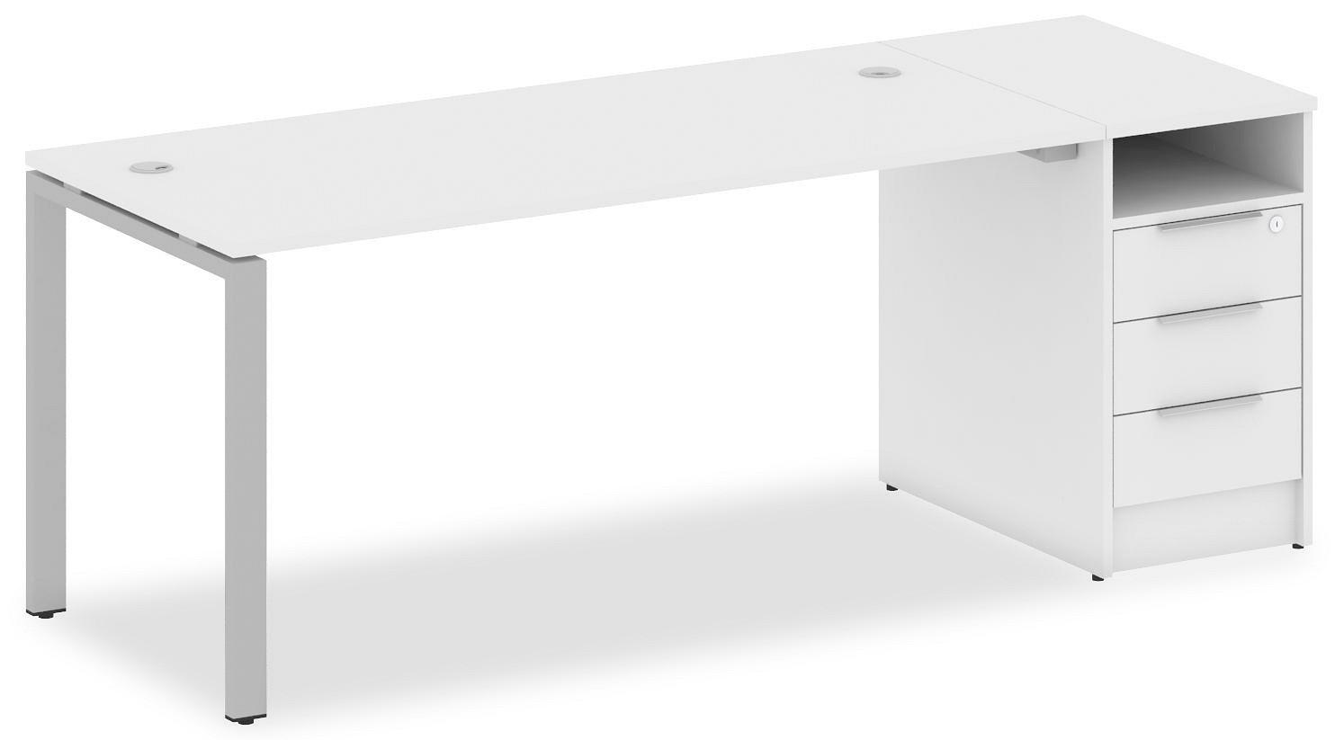 • 3 ящика. Для изготовления корпуса был выбран ЛДСП Е1, металл в оттенке белый, серый, завершает дизайн матовый верхний слой, гармонично перекликающийся со столешницей. Купить данную модель вы можете по привлекательной цене, равной 23082 руб.