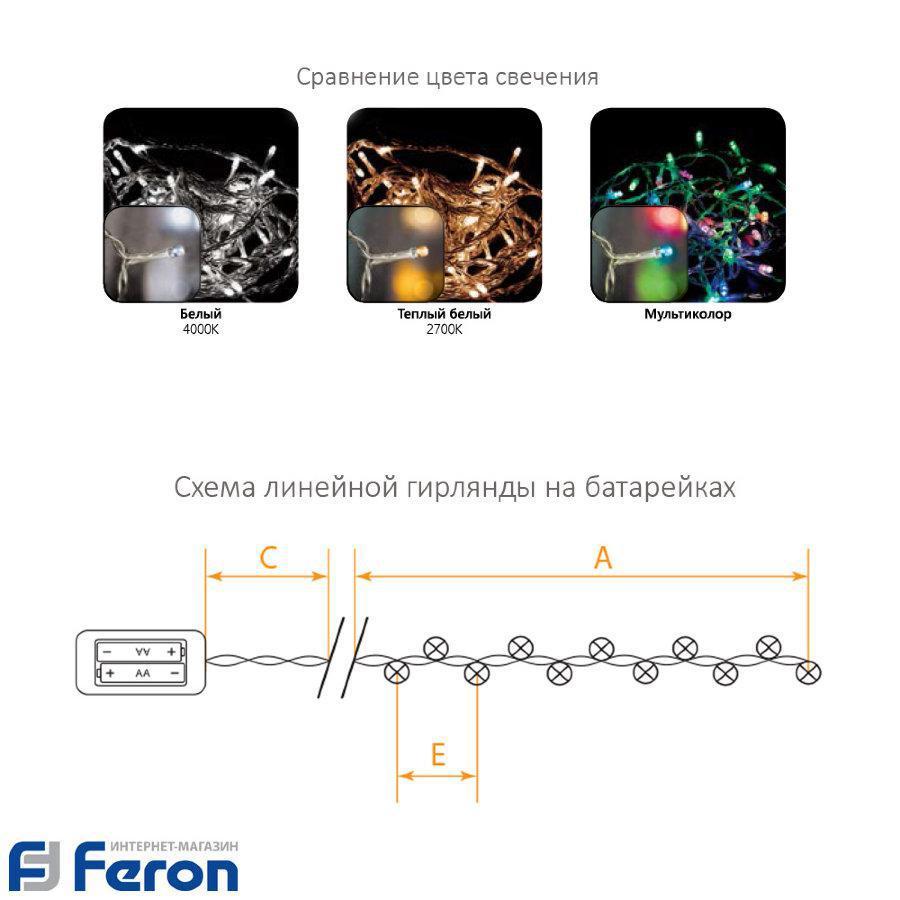 Гирлянда светодиодная линейная, на батарейках, тёплый белый свет, cl303