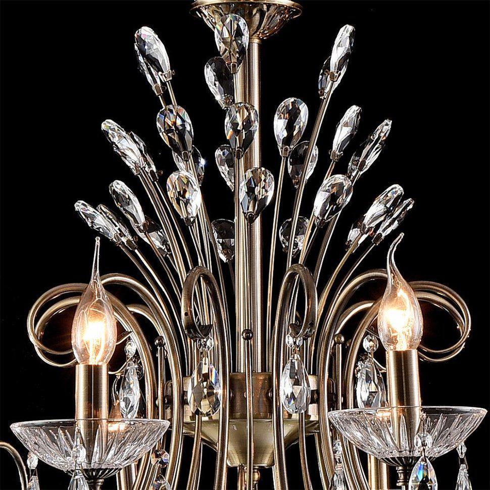 ХЛОЯ. Плавные изгибы рожков "ХЛОЯ" украшены каскадом хрустальных нитей и увенчаны чашами из тончайшего резного хрусталя. Верхняя часть люстры, как коронованная особа сияет лепестками на изящных бронзовых стеблях. Неповторимый блеск модели, металл цвета античной бронзы и ее невесомые формы в полной мере смогут подчеркнуть богатство вашего вкуса.