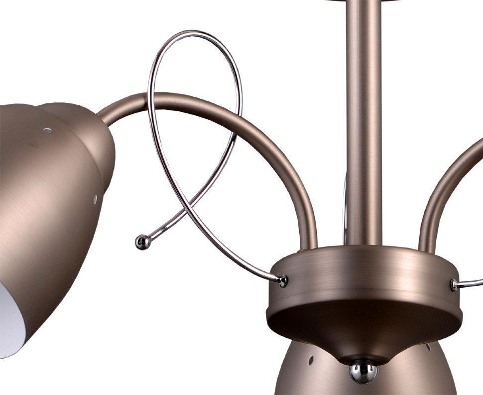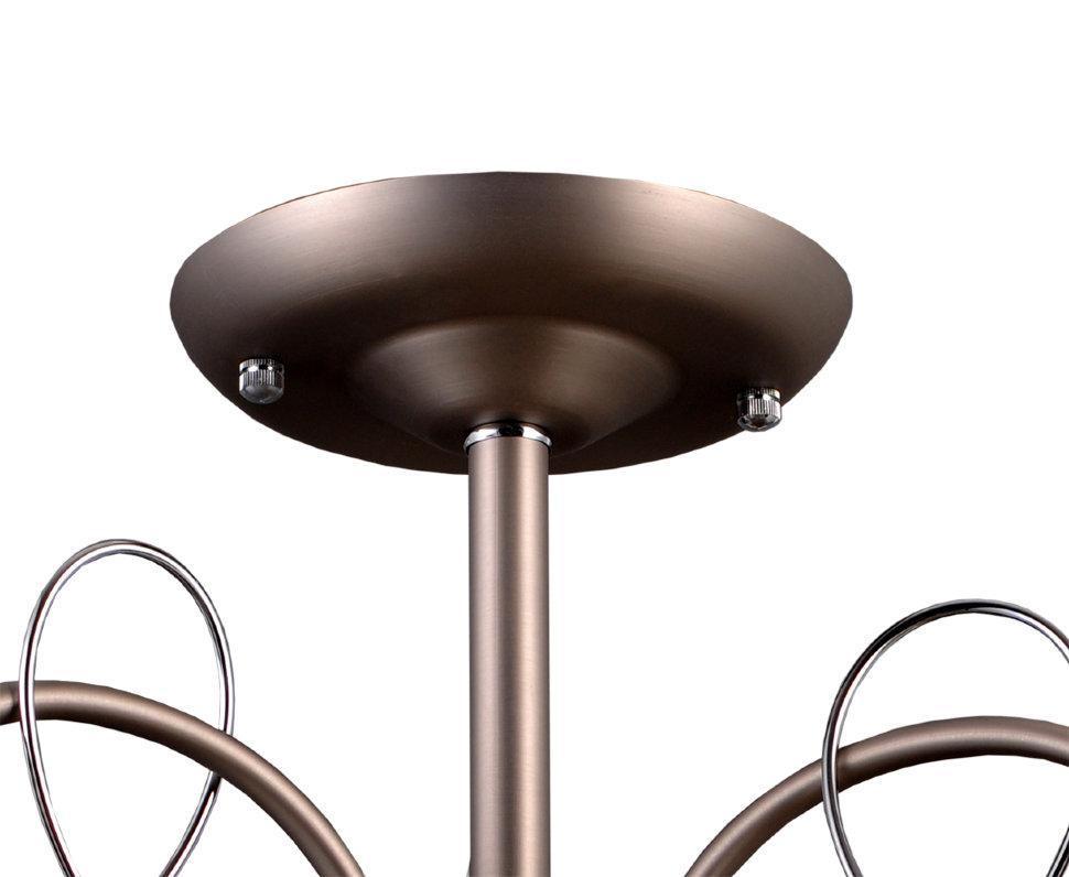 ДЭНИЛА. Основа и плафон-металл цвета сатин никель с матовым покрытием. Дизайн люстры минималистичен, но тонкие хромированные завитки, заполняющие пространство между плафонами и украшенные металлическими горошинами придают люстре нотку воздушной оригинальности.