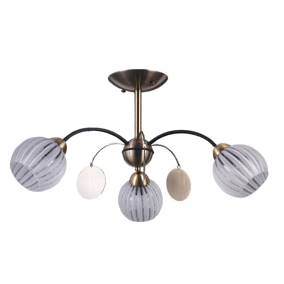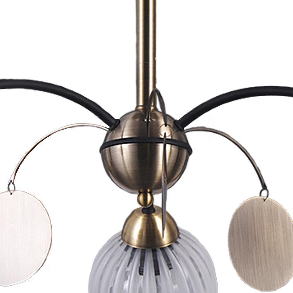 КЛЕМЕНС. Рефленые, стеклянные шары плафонов направлены вниз. Расположившись на дугах серых рожков они мягко рассеивают свет. Декоративные медальоны - подвески вращаясь разбрасывают искры света вокруг.