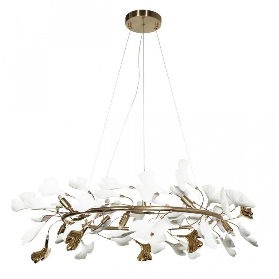 Данная модель входит в состав коллекции Fleur и исполнена в стиле флористика. Люстра имеет высоту 250 мм и диаметр 820 мм. Работает при напряжении 230 V.