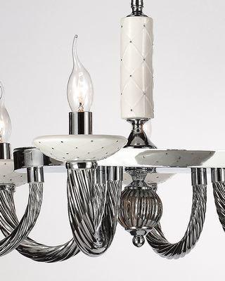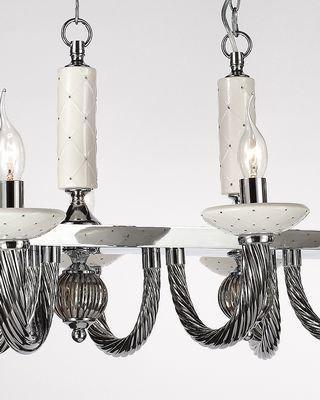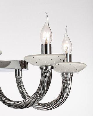 ОДЕЛИС. Модели серии «ОДЕЛИС» яркие представительницы классики из металла цвета хром. Плавные витые рожки украшены удерживают чаши белого цвета и декоративный элемент у основания люстры выполнены из керамики и декорированы маленькими вкраплениями из хрусталин.
