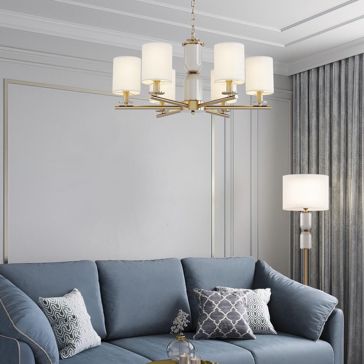 Особенная модель 60146/6 латунь от российской компании Eurosvet относится к коллекции Caprera и отлично подойдет для установки на потолок в гостиной, оформленной в классическом стиле. Подвесная люстра Eurosvet Caprera 60146/6 латунь с цилиндрическими плафонами осветит помещение площадью 11 кв. м. Производитель Eurosvet рекомендует использовать для устройства лампы накаливания с цоколем E14 и мощностью 40 W. Прибор произведен с использованием материалов: текстиль, металл и ткань и может использоваться для натяжного потолка. Основным цветом товара является латунный и бежевый. Подвесная люстра 60146/6 латунь продается по цене 28900 руб. Торопитесь сделать заказ в интернет-магазине SvetONe.