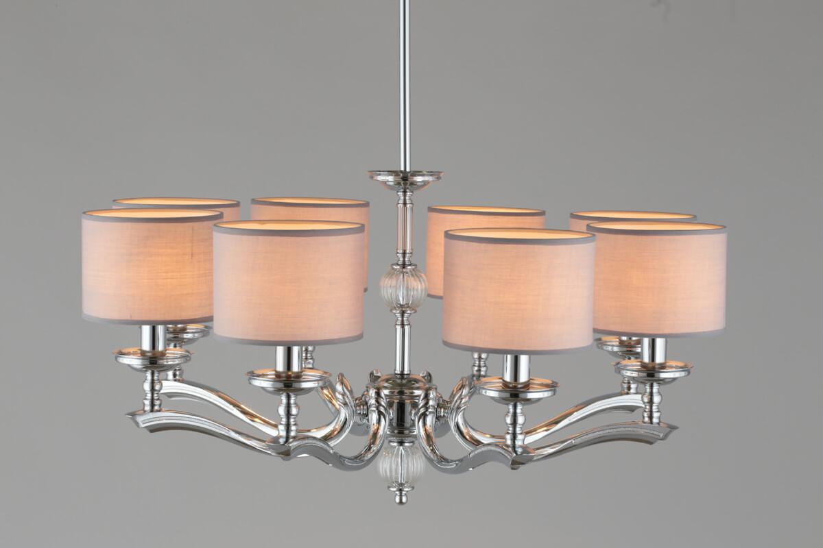 Незаурядная модель OML-64603-08 от китайской компании Omnilux относится к коллекции Sovana и отлично подойдет для установки на потолок в гостиной, оформленной в классическом стиле. Подвесная люстра Omnilux Sovana OML-64603-08 с цилиндрическими плафонами осветит помещение площадью 18 кв. м. Производитель Omnilux рекомендует использовать для устройства лампы накаливания с цоколем E14 и мощностью 40 W. Прибор произведен с использованием материалов: текстиль, металл и ткань и может использоваться для натяжного потолка. Основным цветом товара является серый и хромовый. Подвесная люстра OML-64603-08 продается по цене 29770 руб. Торопитесь сделать заказ в интернет-магазине SvetONe.