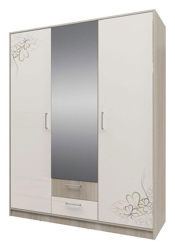 Шкаф 3-х дверный Камила бежевый, зеркальный, ясень светлый