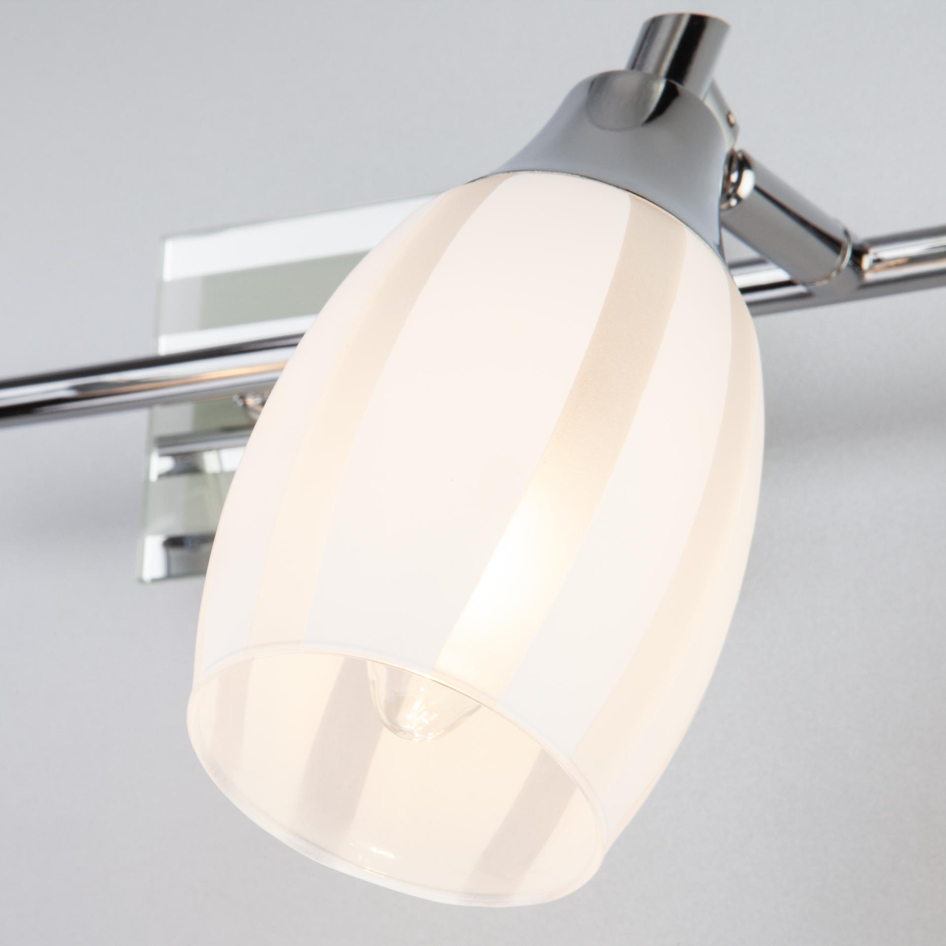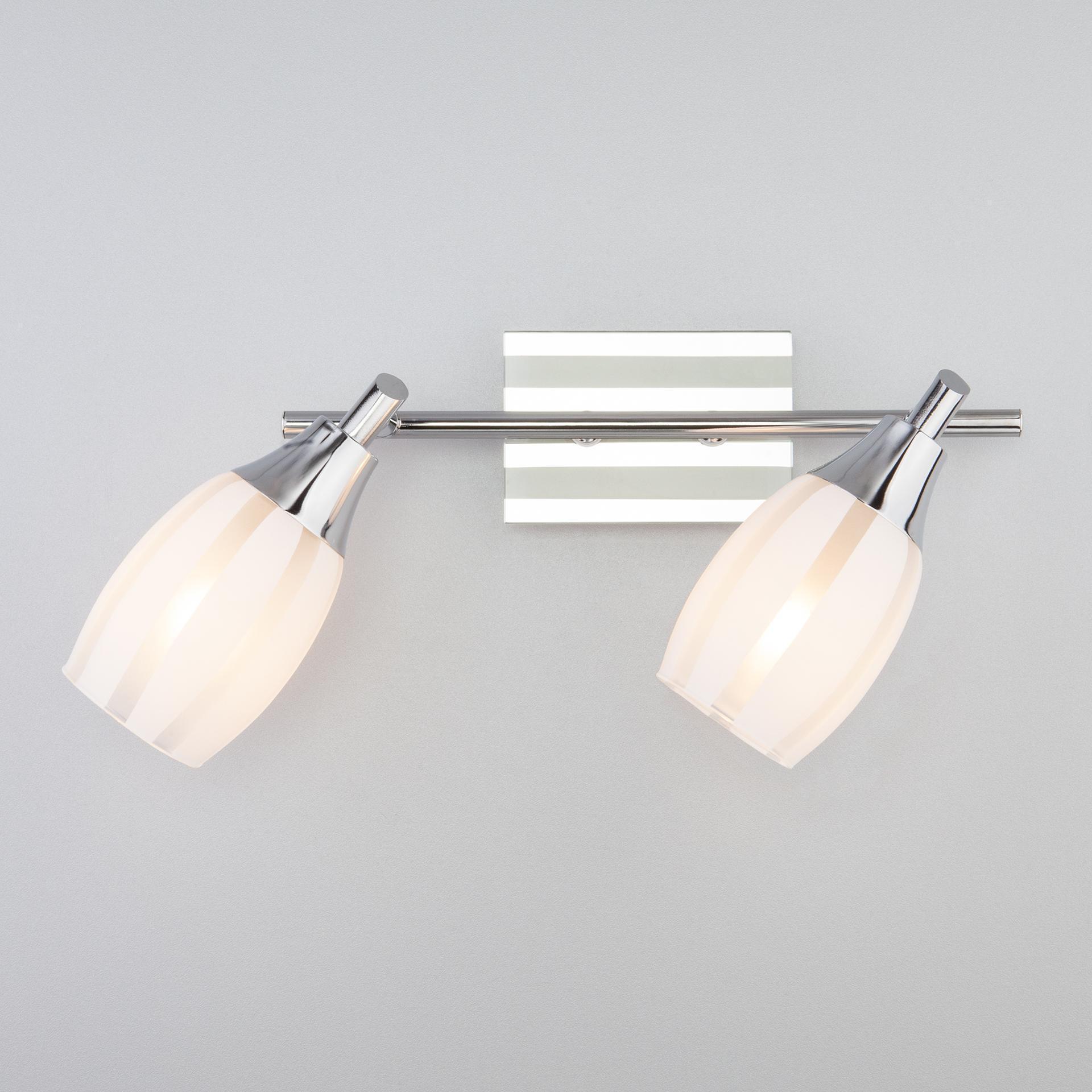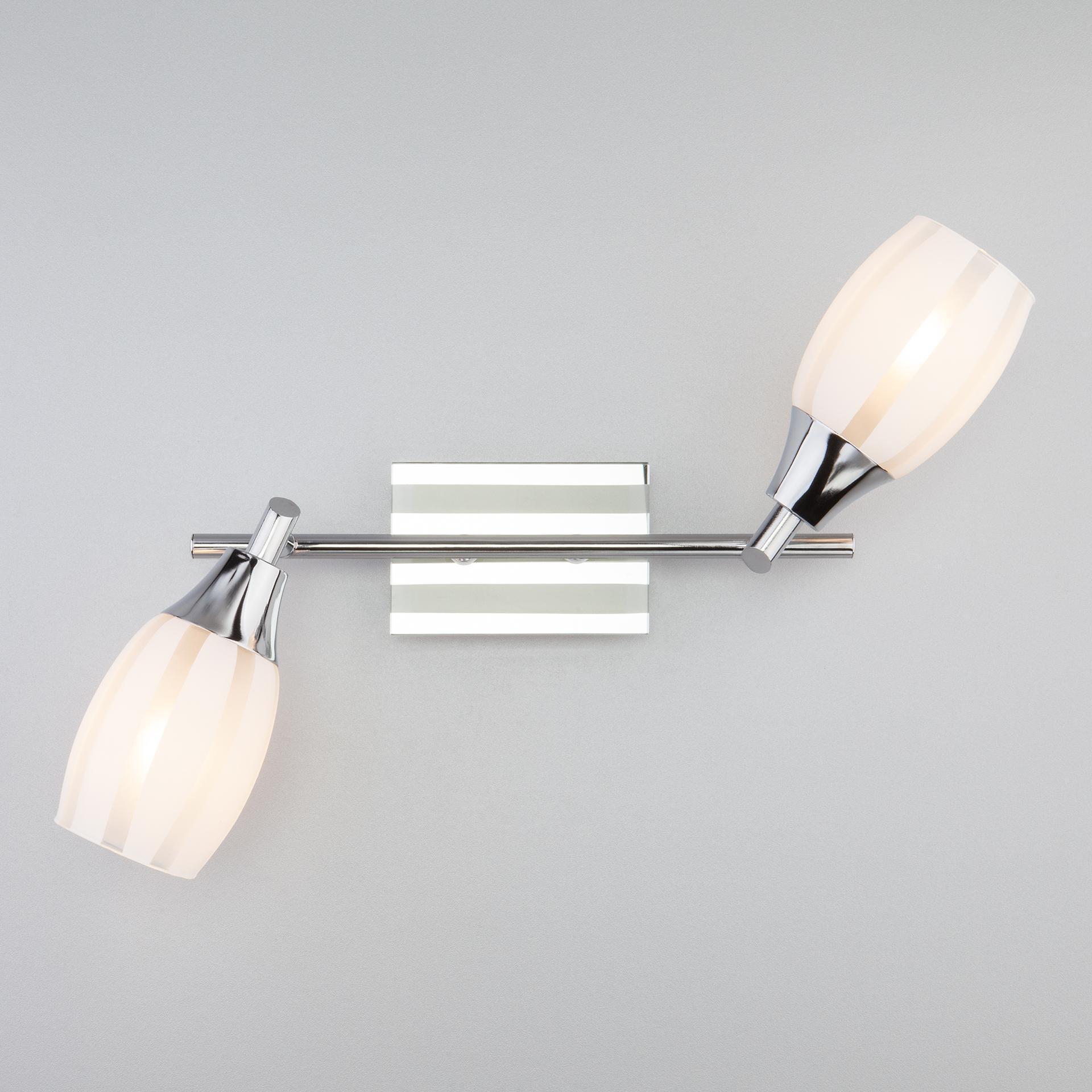 Спот с поворотными плафонами 20129/2 хром создаст качественное дополнительное освещение и станет эффектным дополнением к основному источнику света. Благодаря декоративному стеклянному плафону бра создает мягкое равномерное свечение, подходящее для комфортного чтения книг в вечернее время. В качестве источника света используются сменные лампы типа "Свеча" или "Шар" с цоколем E14. Патрон рассчитан на максимальную мощность ламп накаливания 40 Вт. Корпус светильника выполнен из высококачественного и прочного металла с надежным покрытием. Бра легко устанавливается при помощи крепежной планки, которая обеспечивает надежную фиксацию светильника на стене. В интернет-магазине Минимир вы можете купить настенный светильник с доставкой по Москве, Санкт-Петербургу и России.