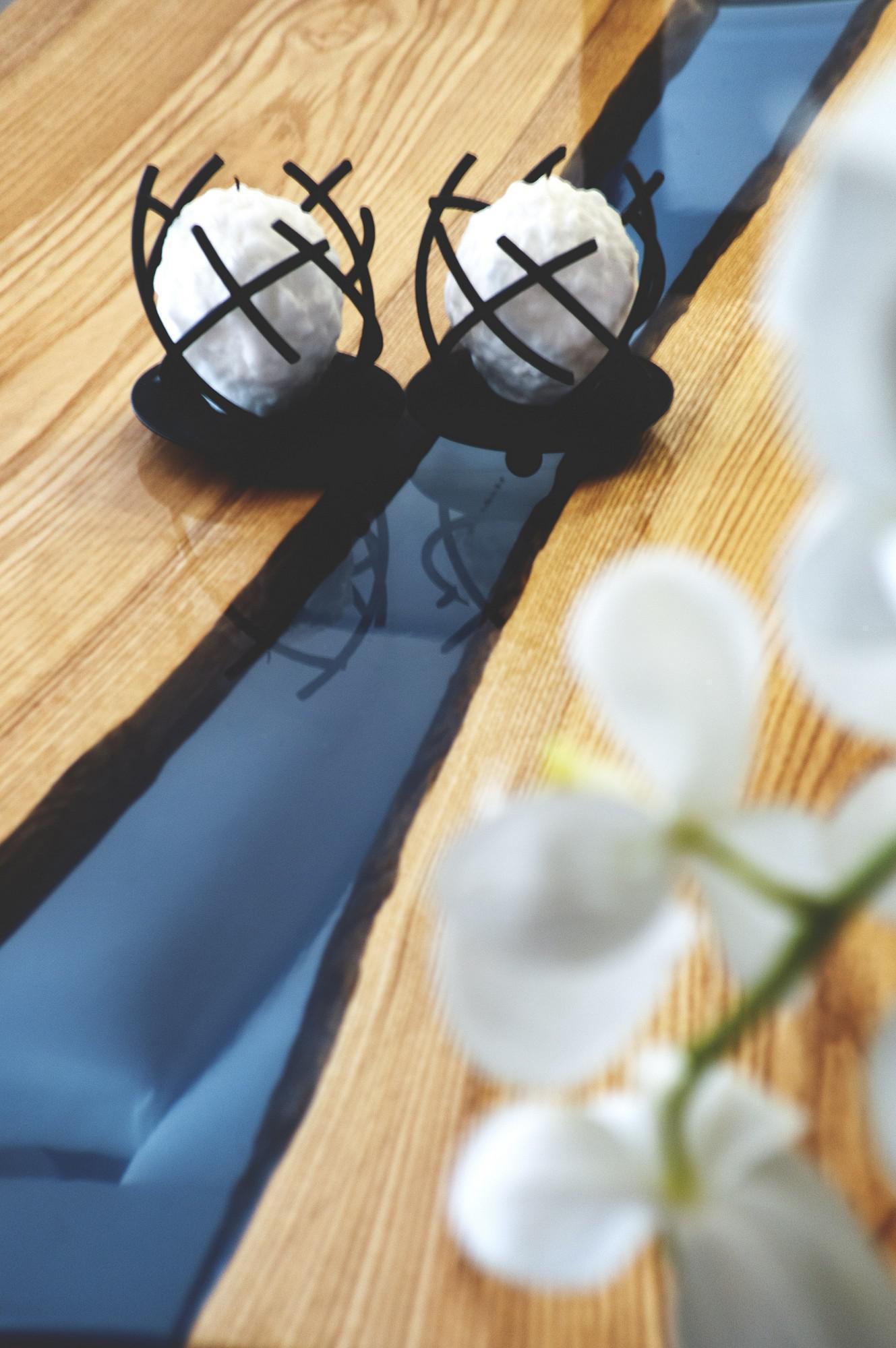 Поверхность стола покрыта специальным экологичным лаком, а акриловая заливка со временем не тускнеет, не трескается, не выделяет вредных веществ и не боится тяжёлых предметов на своей поверхности.