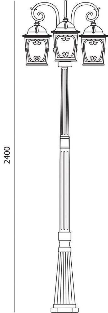 Светильник садово-парковый, серии «Стокгольм» (НТУ) FERON PL145 3*100W, E27, 230V, IP44, цвет черное золото, 4х-гранник Лепнина, столб 2м *3, 640*640*2470мм