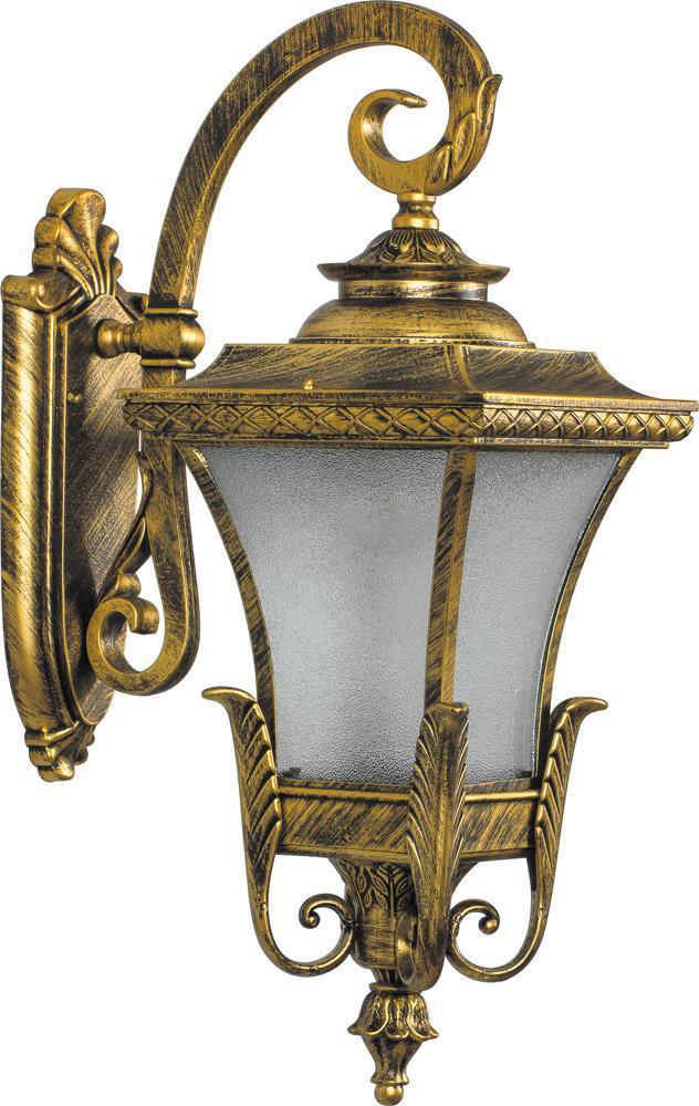 Светильник садово-парковый, серии «Валенсия» (НБУ) FERON PL4022 1*60W, E27, 230V, IP44, цвет черное золото, 4х-гранник Валенсия, на стену вниз, 240*355*620мм