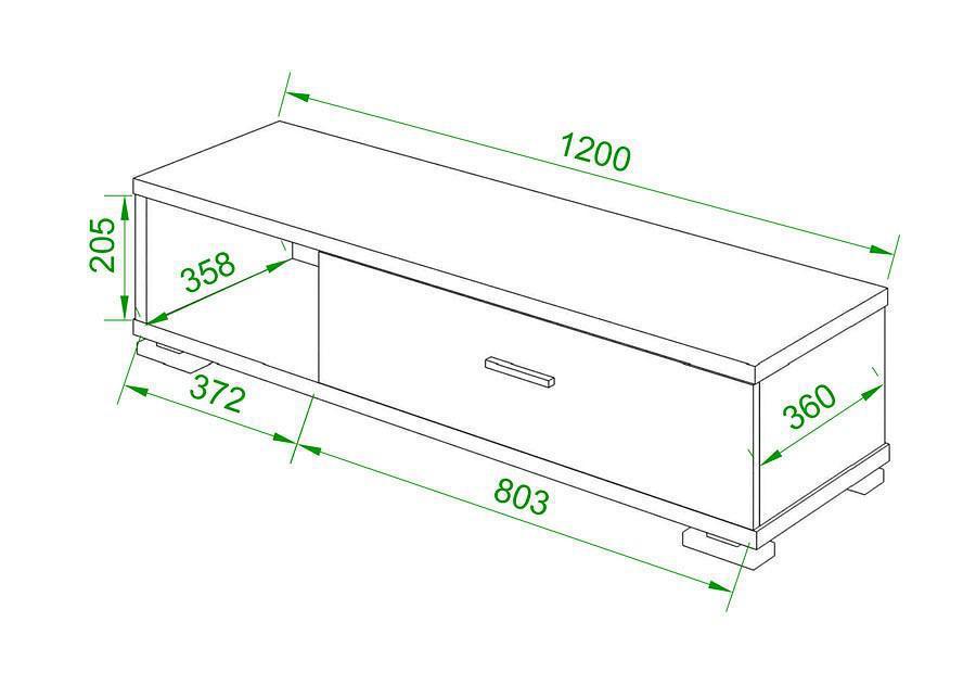 Тумба отлично подходит для хранения одежды, проводов и любых крупных вещей, так как в ней встроен широкий выдвижной ящик.